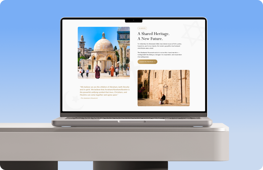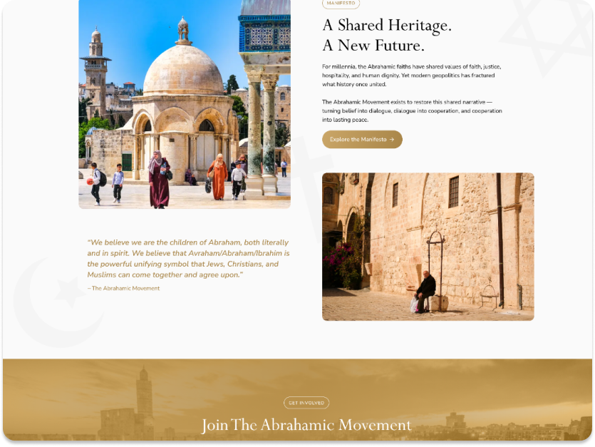 To launch a movement of this magnitude, the Abrahamic Movement needed to project an image that was simultaneously deeply rooted in tradition and forward-thinking in its digital execution.